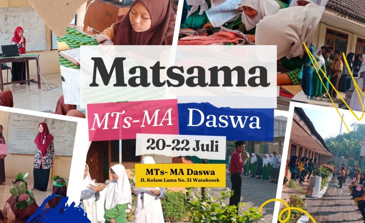 MA Darut Taqwa 1 Watukosek melaksanakan Masa Ta’aruf Siswa Madrasah (Matsama) tahun ajaran 2023 – 2024 pada hari kamis – sabtu tanggal 20 – 22 Juli 2023. Kegiatan di mulai dari pukul 07.00 – 12.00 WIB. Tujuan matsama sendiri untuk mengenalkan lingkungan sekolah madrasah dan membentuk siswa yang berkarakter dengan materi yang disampaikan bapak ibu guru. Selain itu untuk menumbuhkan perasaan cinta dan bangga belajar di MA Darut Taqwa 1 Watukosek.
