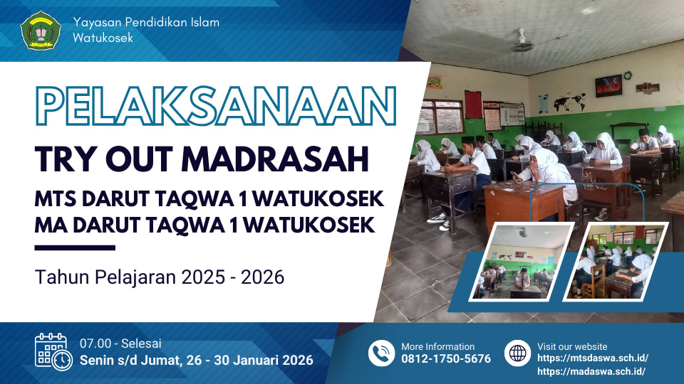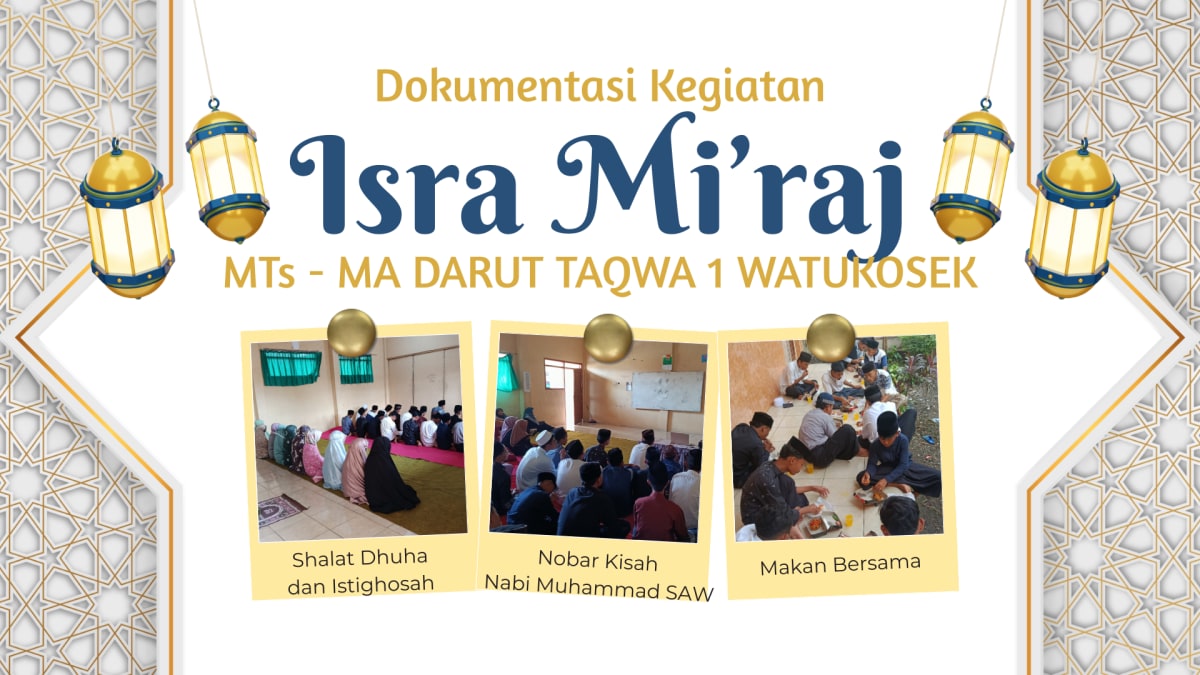 Watukosek, Pasuruan – Seluruh keluarga besar Madrasah Aliyah (MA) dan Madrasah Tsanawiyah (MTs) Darut Taqwa 1 Watukosek memperingati peristiwa besar dalam sejarah Islam, yakni Isra’ Mi’raj Nabi Muhammad SAW. Dengan mengusung tema spiritualitas dan kebersamaan, acara yang digelar di lingkungan madrasah ini berlangsung penuh khidmat dan memberikan kesan mendalam bagi seluruh siswa maupun guru.